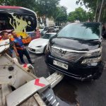 Vellfire Terguling dalam Kecelakaan Beruntun di Jalan Darmo